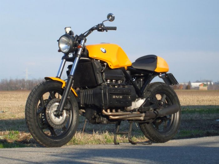 Le BMW della prima serie K (75 e 100) della metà degli Anni Ottanta si trovano a prezzi ragionevolmente abbordabili nel mercato dell’usato, sono meccanicamente solide e affidabili e per questo si possono prestare benissimo per elaborazioni personali senza spendere cifre astronomiche. È quello che ha fatto Abnormal Cycles sulla K75 ha allestito una café racer semplice e moderna, lasciando inalterato il tre cilindri “a sogliola” bavarese, che ora canta da un nuovo silenziatore costruito artigianalmente dal preparatore milanese. La parte anteriore è stata alleggerita eliminando cupolino, convogliatori, strumentazione (adesso ha solo un mini display della Motogadget, con funzioni di tachimetro, contagiri e contakm) e montando un classico faro tondo ed un manubrio rialzato. Il pezzo forte è il codone monoposto di una Ducati Sportclassic con sella in alcantara. Per maggiori informazioni: www.abnormalcycles.com.
